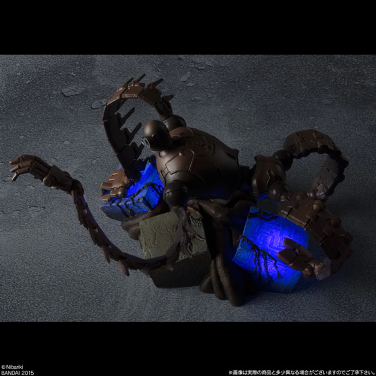 Such as rivets arranged on the back and each place that you arrange a coat of arms, it will produce a more realistic design arrangements were sublime image of work. Pedestal has a built-in LED, megalithic parts arm of the robot soldiers and legs are touching fires blue.