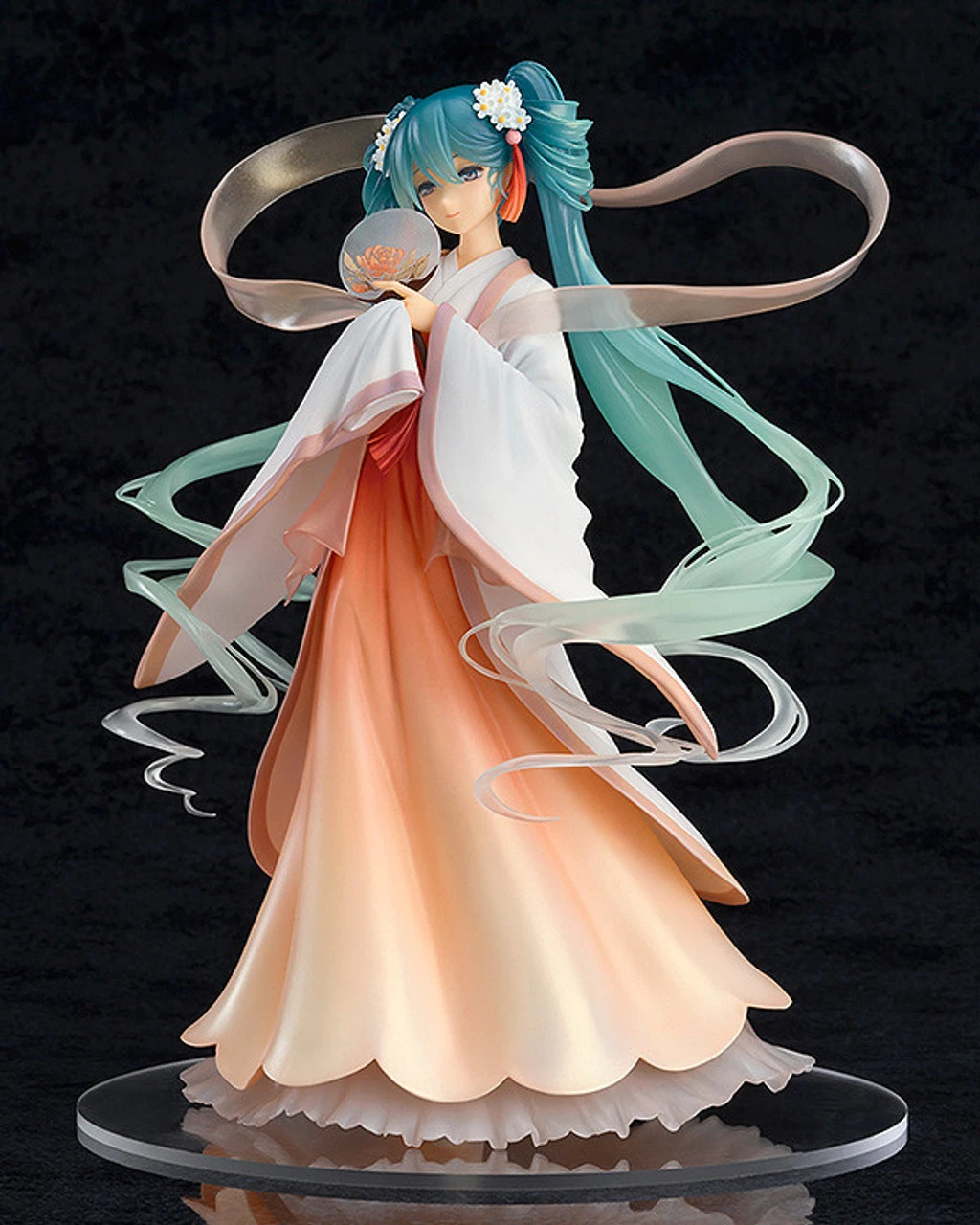 The translucent feeling from the original illustration by Chinese illustrator Rella has been captured as faithfully as possible, with a beautiful sculpt that captures her elegance. The paintwork is also a highlight of the figure, with the gentle colors of the design blending with the translucent parts to create an stunning appearance. Enjoy a moonlit light with the gentle smile of Harvest Moon Miku by your side!