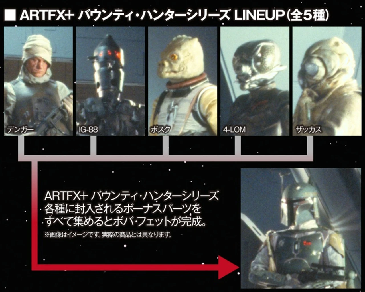 ARTFX + Bounty · Hunter series are five types of Danger, IG – 88, Bosque, 4 – LOM, Zackas.